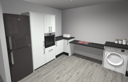 This two-bedroom property will be suitable for one person and an additional bedroom for a family member or carer. It comprises of an adapted kitchen and bathroom, with external scooter store and level access all around the property to enable the occupants to easily get out and about.